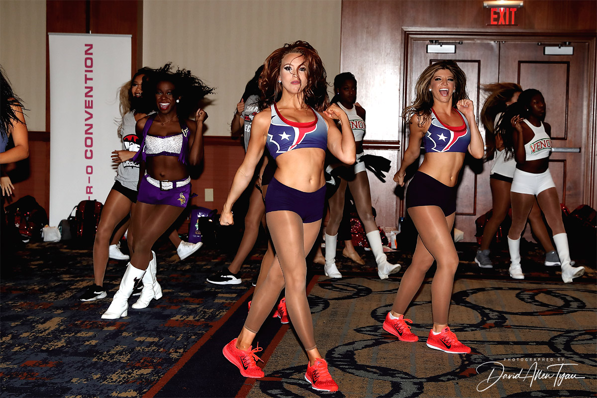 At 5:30 pm the last showcase of the day had concluded and the cheerleaders reconvened in the grand ballroom to perform the group dance. I couldn’t remember many of the steps of the group dance, but from what I saw, the cheerleaders didn’t miss a beat. I guess that’s why they are professional dancers…they learn fast and remember what they have been taught.