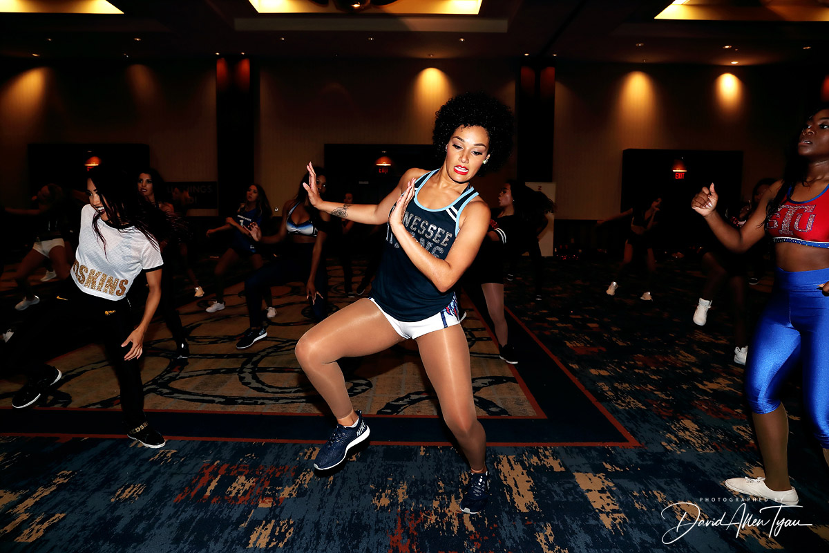 The group dance is the first official dance that is taught at the convention and kicks off the festivities by getting all the participants together for one unified dance experience. As is custom, Brandii McCoy of the Charlotte Hornets choreographed the group dance routine and showed it off to all those in attendance.